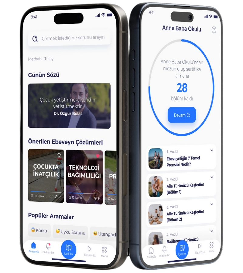 Parentwiser’ın en kapsamlı bölümlerinden biri olan Anne Baba Okulu, ebeveynlerin bilinçli ve etkili ebeveynlik becerileri kazanmalarına yardımcı oluyor. 52 farklı modülden oluşan bu program, her ebeveynin ihtiyaç duyabileceği konularda bilimsel içerik sunuyor.
