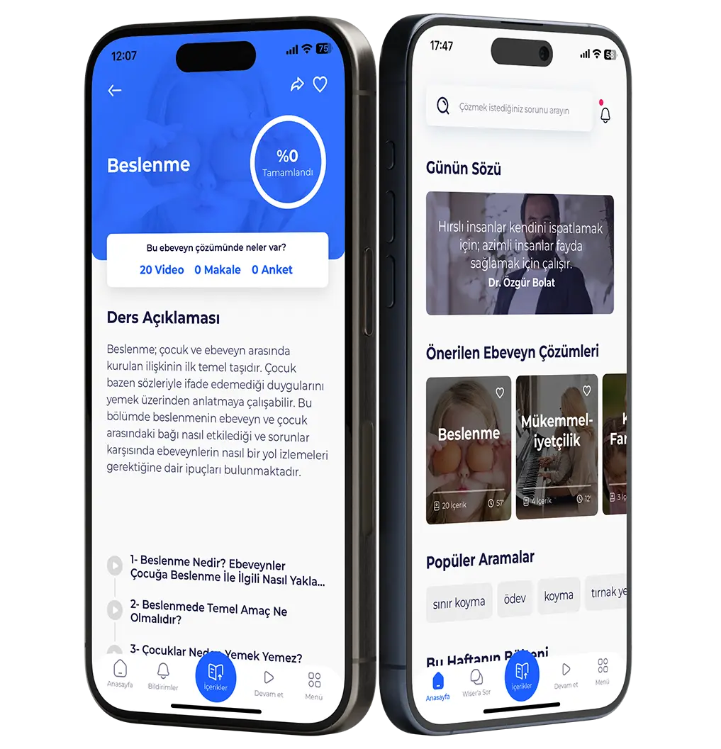 İhtiyaç duyduğunuz her an, çocuğunuzla yaşadığınız sorun hakkında Doç. Dr. Özgür Bolat’tan dinleyeceğiniz videolar ve okuyacağınız makaleler ile, ebeveynlik yaklaşımlarınızı geliştirin. Bilimsel anketler ile, ebeveynlik stillerinizi keşfedin, güçlü ve zayıf yönlerinizi tespit edin. Böylece çocuğunuzla daha sağlıklı ve güçlü bir ilişki kurun!